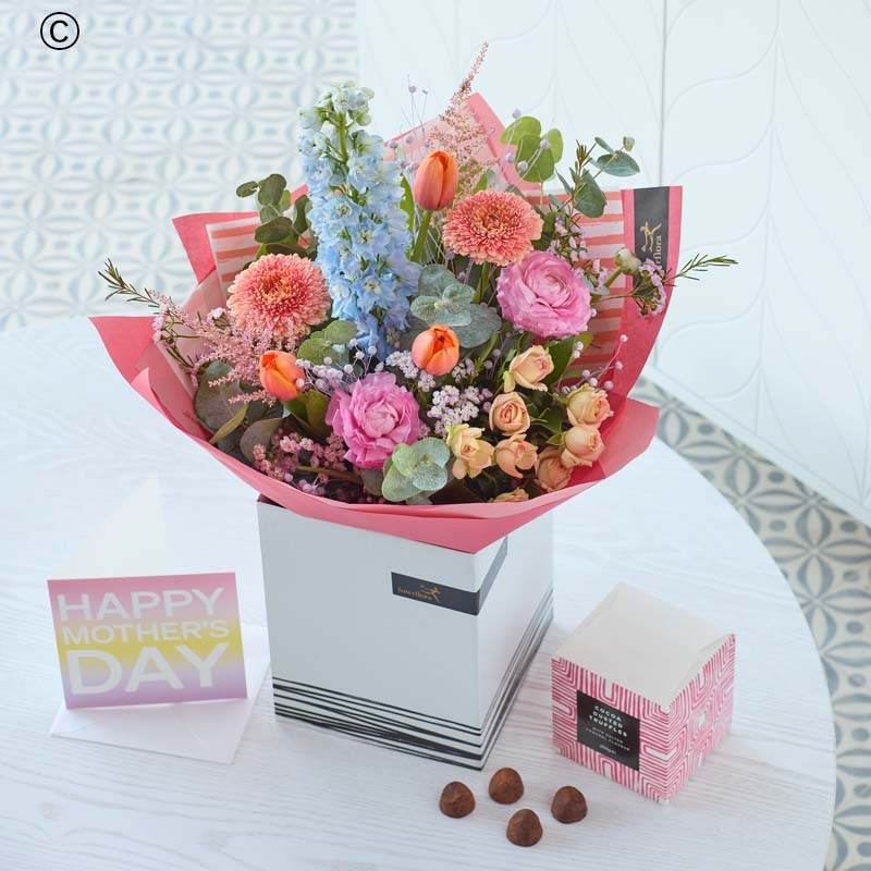 The perfect choice for Mother's Day 2025, and a thoughtful gesture to show mum just how much she means to you. A beautiful gift idea for mum that combines stunning Mother’s Day flowers, sweet treats, and a personal touch.