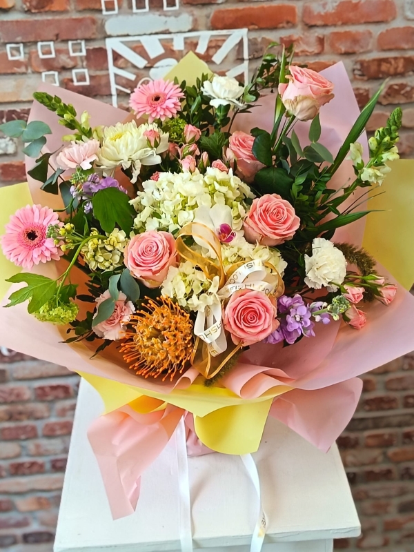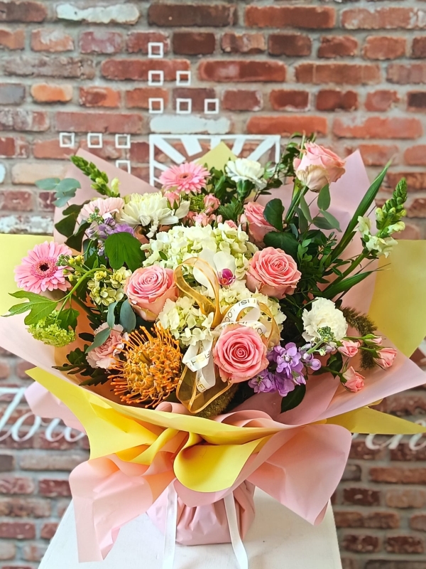 Fishlocks Easter Extravaganza. the Easter bouquet with the WOW factor. who needs chocolate eggs when you could gift this beauty. comprised of an array of pastel flowers, roses, hydrangeas, orchids, stocks... the list goes on and on. Wow someone with our Easter Extravaganza. (available for delivery and collection)