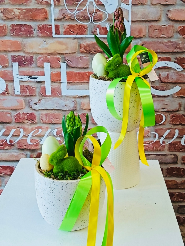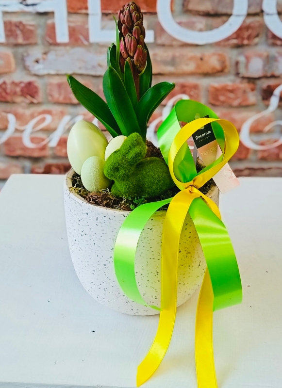 Fishlocks Easter Hyacinth Stone. The 3rd addition to our Easter plant range. Fragrant hyacinth bulb planted in a beautiful stone pot with added Easter flare. (available for delivery and collection)